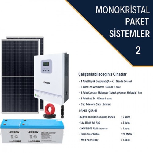MONOKRİSTALLİ KÜÇÜK EV PAKETİ (PAKET 2)